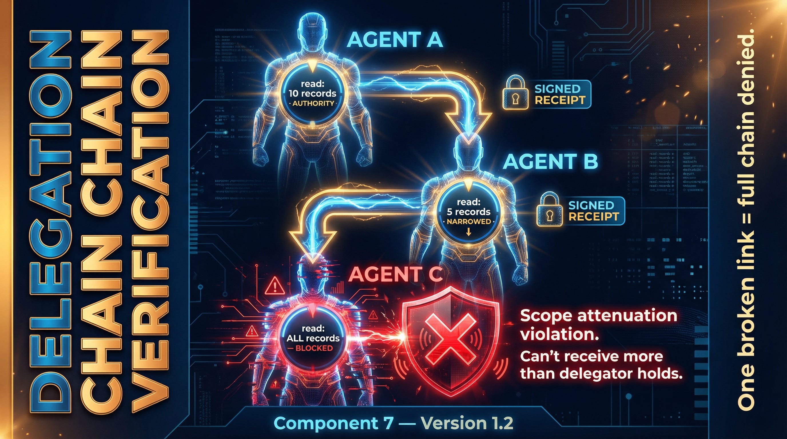 That’s what happens in multi-agent systems today. An agent says “Agent A told me I could write to the customer database” and without chain verification, there’s no way to prove or disprove that. You’re just trusting what the agent says about itself.